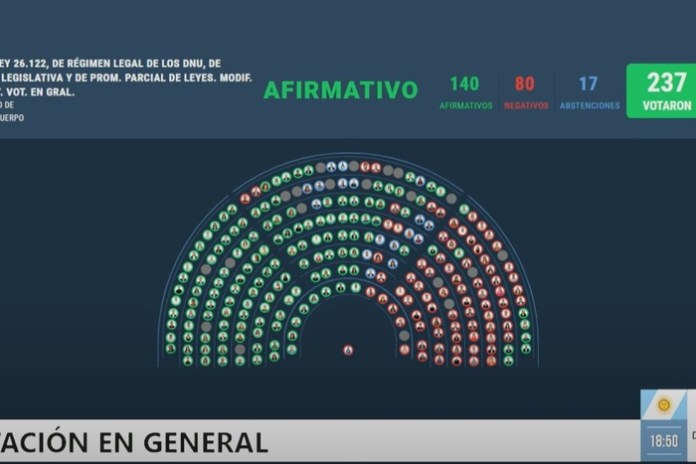 La Cámara de Diputados aprobó en general la ley que limita el uso de los Decretos de Necesidad y Urgencia (DNU), pero perdió en la votación en particular del artículo 3. Debido a esto, el proyecto deberá volver al Senado.